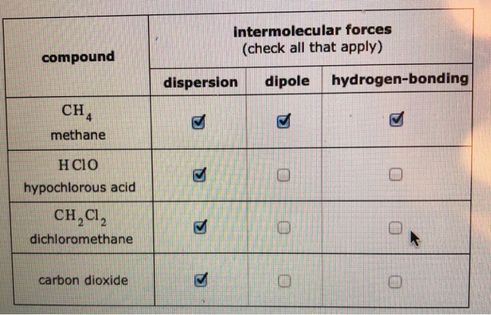 Solved Intermolecular Forces (Check All That Apply) Compound | Chegg.com
