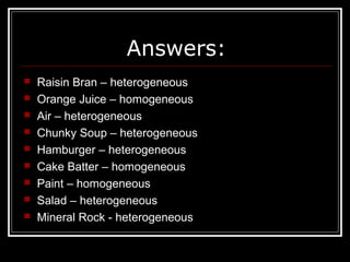 Most paint is homogeneous, unless it has grit in it. Study documents to learn about new discoveries vedantu students ace jee advanced 2021! Homogeneous vs heterogeneous classify the following types of matter as either homogeneous or
