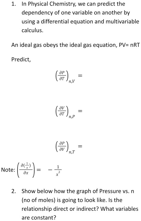 Solved: In Physical Chemistry; We Can Predict The Dependency Of One Variable On Another By Using A Differential Equation And Multivariable Calculus_ An Ideal Gas Obeys The Ideal Gas Equation, Pv= Nrt