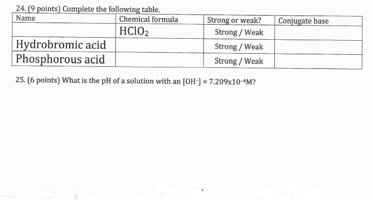 Solved Conjugate Base 24. (9 Points) Complete The Following | Chegg.com