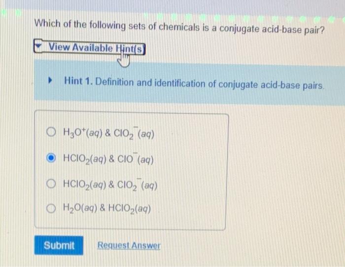 Clo2 how in the world do you determine which one is the conjugate acid and which one is the conjugate base? What is the conjugate acid of clo2 −? The ph of a 0.015 m solution of hypochlorous acid has a ph… a: