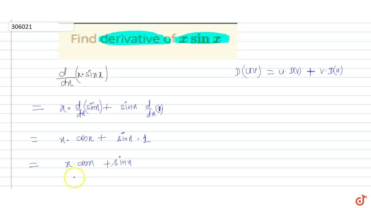 The derivative of sin x with respect to x is cos x. He provides courses for maths, science, social science, physics, chemistry, computer science at teachoo. Dy/dx = x.cos x + sin x.