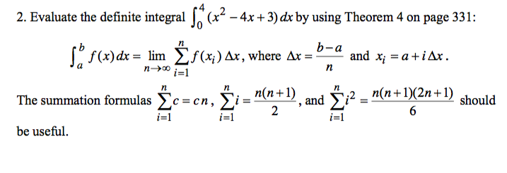For each definitive integral, define deltax and xi, set up the limit of the riemann sum that defines this integral, and solve the integral using the limit definition. School northern virginia community college; Whatsapp for any query :